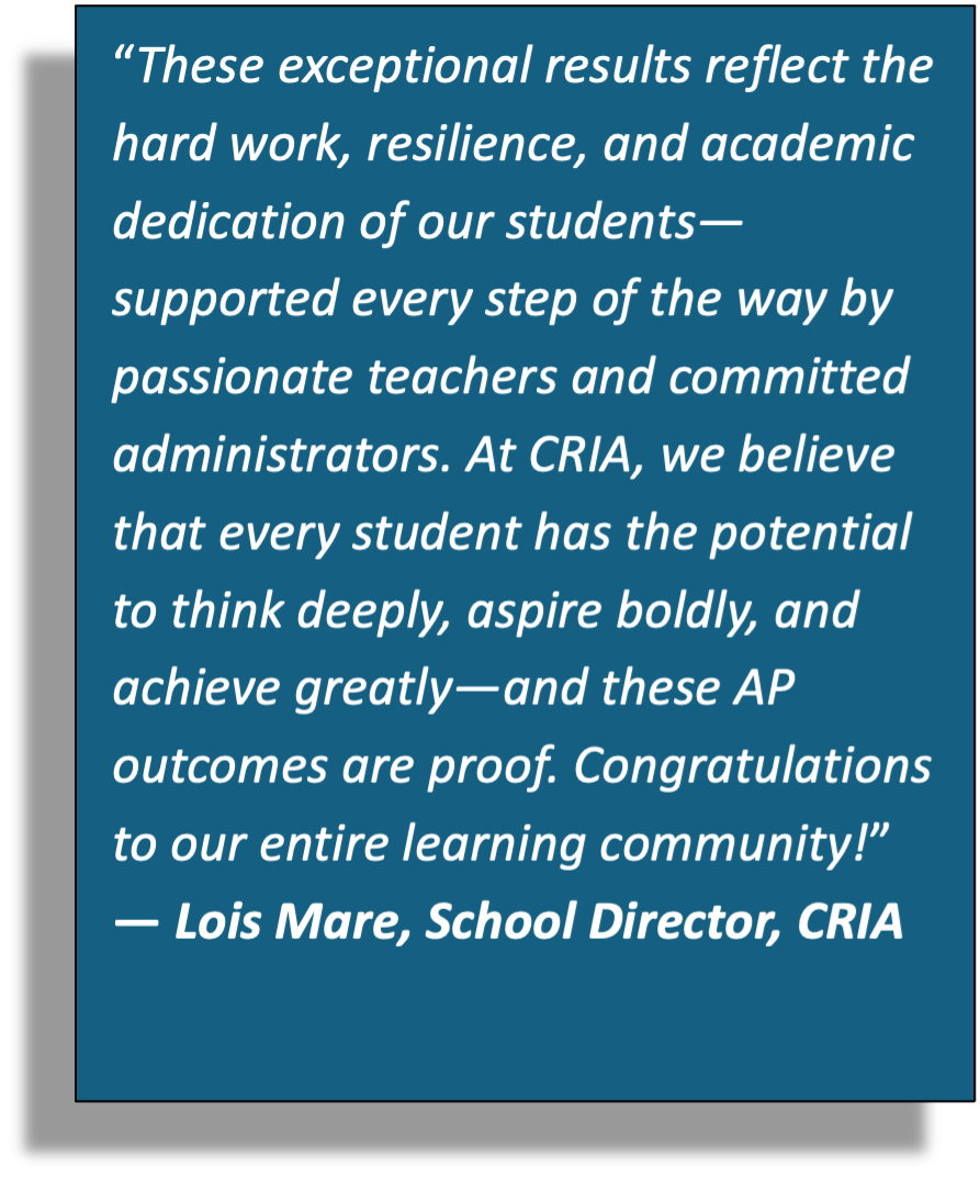 These outcomes reaffirm CRIA’s reputation as the leading college-preparatory school in the region.